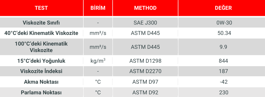 Kolay ilk çalışma: SAE 0W-30 özellikleri ile çok düşük sıcaklıklarda bile motorun kolay çalışmasını sağlar. (test ortam sıcaklığı : -40°C)